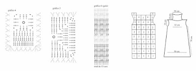 Pontos utilizados - Ponto meia: direito em m., avesso em t., ponto fantasia – siga o diag. 1, barra 1/1 – siga o diag. 2, faixa de trança para acabamento na barra, palas e decote – siga o diag. 3.