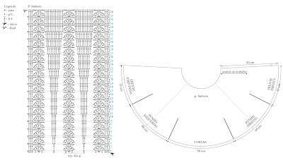 • Comece pelo decote, faça 57 corr., mais 3 corr. para subir a carr. e trab. em p. fantasia. Após concluir a 38ª carr., arremate.