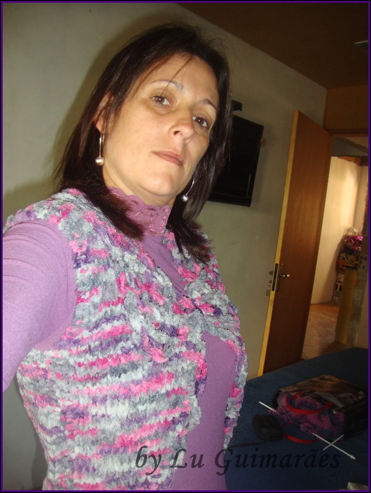 Colar Três Voltas com vitrilhos lilás