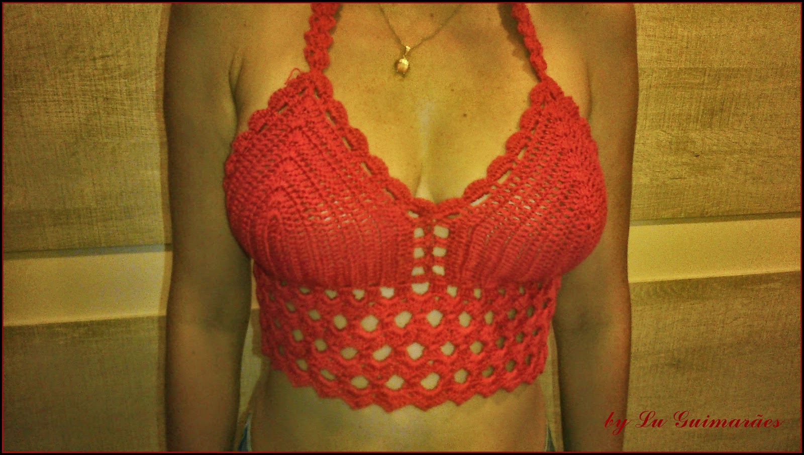 Colar com flor de crochê
