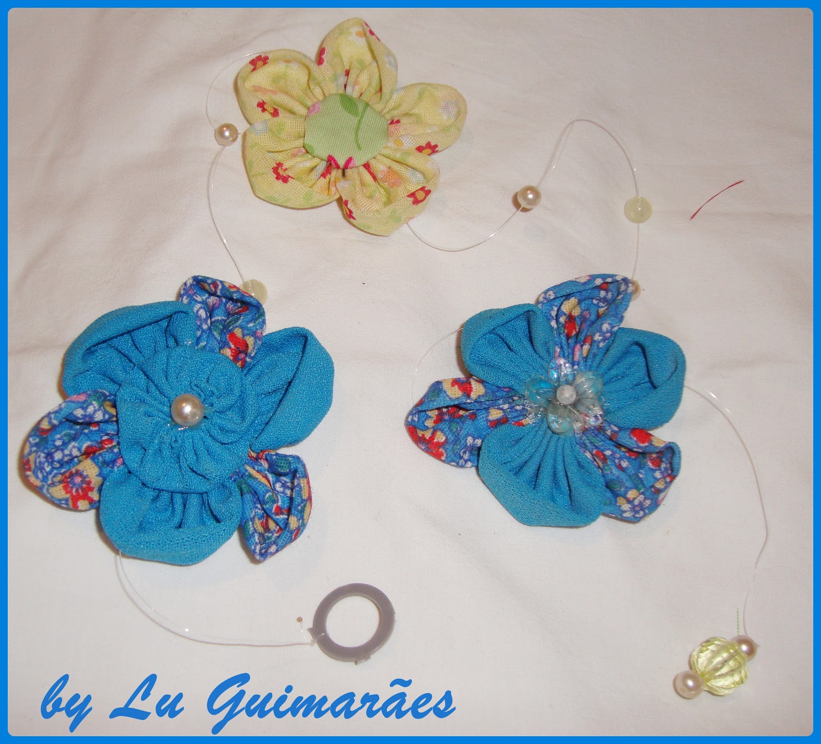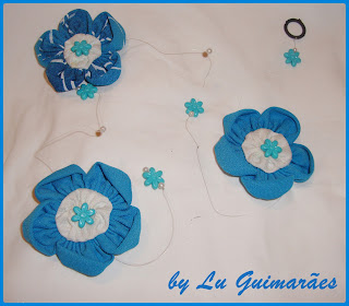 Colar Três Voltas com Fitas azul